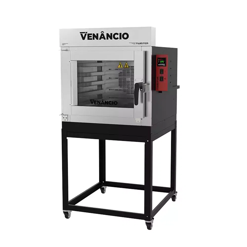 O forno turbo profissional Venâncio Twister 5 esteiras oferece alto rendimento produtivo, padronização e eficiência, sendo essencial para operações que demandam escala e qualidade constante.